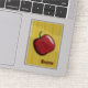 Un rocoto rojo pimienta está decorado con patrones inspirados en los coloridos textiles del Perú y se sienta en un fondo amarillo con una versión más pequeña del mismo patrón y una etiqueta de escritura en la esquina. Esta pimienta picante se come en Perú y Bolivia y se ha cultivado en la zona desde la época pre-inca.