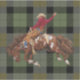 Cowboy con este buster de bronco con temática rodeo sobre un fondo de manta verde. Ideal para fiestas, regalos y cumpleaños.