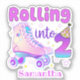 Celebra tu segundo cumpleaños con estilo con este adorable diseño de "Rolling Into 2" con adorables patines de rodillos morados. Ideal para una fiesta de cumpleaños con temática de patinaje sobre ruedas.