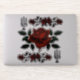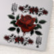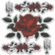 rosa roja profunda con gotas de rojo acompañadas de dos rojas vírgenes y dos candelabros negros. Ideal para un evento temático de gótico o sólo para el amante de este tipo de arte.
