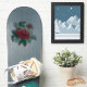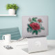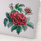 Dibujo de acuarela vintage de una rosa roja con hojas de esmeralda verde.