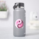 Este pegatina de voleibol yin y yang, cortado al aire libre, presenta elementos de yin blanco y negro semitransparentes y elementos de yang que revelan un voleibol minimalista (representado sólo por sus costuras en blanco) y un fondo rosado de personalizable - personalizado con su nombre - por katz_d_zynes
