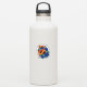 Una serpiente venenosa, representada en un vibrante matiz naranja, está enrollada en medio de un grupo de rosas azules. Se levanta la cabeza de la serpiente, se abre la boca en un silbido amenazador, revelando colmillos agudos. Los rosas, con sus espinas y pétalos delicados, contrastan maravillosamente con la naturaleza depredadora de la serpiente. La imagen se representa en un estilo gráfico audaz, con detalles complejos y un efecto de salpicadura de pintura, creando una composición visual llamativa y potente.