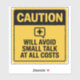Este humorístico pegatina estilo cautela declara audazmente que "EVITARÁ PEQUEÑAS CONVERSACIONES A TODO COSTO" en un sorprendente formato negro y amarillo. Diseñado para imitar la señalización oficial de seguridad, cuenta con un icono negro de burbuja de chat con una cruz (✖️), que transmite su postura con claridad y encanto. Perfecto para introvertidos, almas tranquilas o cualquiera que prefiera conversaciones significativas antes que chit-chat incómodo. Póngalo en tu portátil, botella de agua o portátil y que el mundo sepa que no estás aquí para hablar del clima.