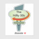 pegatina de vinilo cortado por personalizado con una imagen de un cartel de cena de los años 50 y texto de personalizable. Ver pegatina cuadrado coincidente, bolso y etiqueta. Ver toda la colección de Pegatinas de los años 50 en INVITES | Sección Pegatinas y etiquetas.