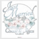Comience su aventura como marido y mujer con este pegatina de señalización boda recién casado con flores de magnolia rosa de color agua y follaje sabio con vistas a una pintoresca cordillera. La moda Boho, el exterior y la elegante decoración boda de montaña complementan a nuestro boda "magnolias azules brumosos".