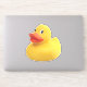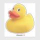 pegatina de vinilo cortado por personalizados con una imagen de un pato amarillo de goma con grandes ojos negros y un billete naranja. Ver toda la colección de Pegatinas de Esquina Infantil en INVITES | Sección Pegatinas y etiquetas.