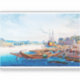 Digitalmente restaurado y mejorado: Rüdesheim del suroeste, visto desde el puerto del Rin en Bingen - un acuatint de Johann Ludwig Bleuler (creado antes de 1840).