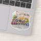 Celebra las paradas culinarias clásicas de la carretera madre con este pegatina impresionante. El diseño presenta la forma icónica de la ruta 66 con la forma de señalización de la carretera "Route 66" que se muestra de forma destacada. El fondo es un gráfico de la famosa contienda Dog House Drive-In en Albuquerque, Nuevo México, un lugar muy querido por su signo de neón y su cocina clásica. Este pegatina es un homenaje perfecto a los restaurantes históricos que han animado a los viajeros durante décadas, ideales para su laptop, botella de agua o diario de viajes por carretera.