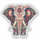 A stunning front-facing elephant head illustration, richly decorated with symmetrical floral and paisley patterns. The design features a harmonious color palette of deep red, navy blue, and cream accents, evoking the style of traditional Indian mandala art. This majestic totem animal is perfect for spiritual decor, yoga accessories, and bohemian-style stickers.