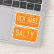Two piece bonus sticker set! Travel back in time to the year 1969 with these vintage-inspired Florida license plate designs. Bold, embossed-style pale yellow text pops on the orange contrast. There's realistic screws to keep an authentic vibe. The use of vintage-style lettering and Sunshine State slogan brings a nostalgic and playful feel. With fun custom tag numbers "Salty" and "Beach Babe" this unique coastal life sticker set is perfect for your cooler, car, laptop and more! The 14x14 inch sticker size will replicate a realistic plate sized sticker. Multiple sizes available.