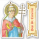 San Cornelio fue un papa del siglo III que ascendió a regañadientes a la presidencia de San Pedro tras las persecuciones decisivas. Decius había exigido un sacrificio público verificado a los dioses romanos y por el bienestar —del Emperador— de todos los habitantes del Imperio, excepto los judíos que estaban exentos. Algunos cristianos fueron a sus muertes en lugar de cumplir con el requisito; otros huyeron o se rindieron para salvar sus vidas. A medida que disminuía la persecución, la Iglesia se enfrentaba a un problema que causaba serias divisiones: ¿eran los cristianos que habían prescrito para ser perdonados o después de haber sido excluidos para siempre de las becas y los sacramentos? Novatian, líder de la iglesia que había sido entregado por el papado, argumentó a favor de la exclusión; Cornelius, con el respaldo del Sínodo, pidió penitencia y perdón. + Acá, San Cornelio lleva la corona papal de tres niveles o triregno y el alargado alcance rojo o el "mantum" alineados en verde sobre una túnica azul brillante y una alba blanca. Lleva la cruz papal con sus tres vigas horizontales de longitud decreciente de abajo a arriba en la mano izquierda. Al mismo tiempo, los tres bares representan la Santísima Trinidad y el Mundo, la Iglesia y el Cielo. En su mano derecha, lleva una batalla o el cuerno de cazador, su principal atributo ya que el nombre "Cornelio" en latín significa "cuerno de batalla". Como su cuerno se parecía a las trompetas de oídos usadas por la dificultad auditiva, St. Cornelius llegó a ser invocado por personas con dolencias de oído. En las artes, tanto finas como devocionales, la iconografía de este santo papa es notablemente consistente, lo que lo hace fácilmente identificable. + Las persecuciones se reanudaron bajo la dirección de Trebonius Gallus, el emperador subsiguiente, cuando estalló la peste en Roma. Los cristianos se convirtieron en chivos expiatorios del desastre. El Papa San Cornelio murió en el exilio en 253, ya sea por los rigores de su destierro o por la decapitación. Es patrocinador de epilépticos, pacientes con dolor de oído y animales domésticos. + Festín: 16 de septiembre + Crédito de la imagen (SAU 042): Figura extraída de una imagen antigua del Papa San Cornelio de una huella devocional de finales del siglo XIX en cromolitografía, publicada originalmente por la Socièté de St. Augustin, Brujas, Bélgica, de la colección privada de ephemera religiosa del diseñador.