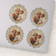 Este hermoso pegatina de contorno presenta una imagen católica tradicional de San José y el Niño Jesús. Está rodeado por un borde dorado decorativo.