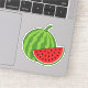 Un ilustracion de toda una sandía y una tajada de ella. La sandía es un fruto oblongo o esférico con una corteza exterior rayada verde u verde oscuro y una pulpa de color jugoso dulce rojizo o amarillento. Esta fruta puede ser sembrada o sin semillas. La sandía es una de las frutas refrescantes favoritas para el verano. Puedes comer esta fruta fresca y fría o preparar un delicioso batido de sandía. La sandía hidrata y proporciona buenos nutrientes a su cuerpo. Si ya ves muchas sandías en el mercado, es hora de decir "¡Hola, verano!".