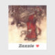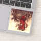 Pegatina con el ilustracion de Arthur Rackham, Santa Claus (1907). Un Santa Claus, de cama roja, lleva una bolsa de regalos navideños en un bosque nevado. Los elfos vuelan a su lado. ¡Un regalo jovial para los Navidades!