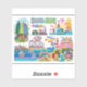 Pegatina Santa Cruz Illustrated Map Boardwalk Beach Surfing