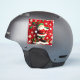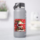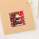 En un ambiente festivo, rojo y adornado con copos de nieve y acentos vacacionales, Santa Claus desplaza un club de golf con regocijo.