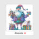 Un Santa alegre y festivo vestido con un vivo atuendo violeta se levanta alegremente, sosteniendo coloridos regalos envueltos en cada mano. Rodeado de regalos hermosamente decorados, difunde alegría por las vacaciones, encarnando el espíritu de los Navidades y la alegría de dar.