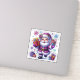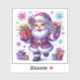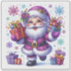 Un alegre personaje de Santa Claus con un vibrante conjunto violeta lleva alegremente regalos coloridos rodeados de decoraciones festivas. Los copos de nieve y los adornos flotan en el aire, creando un delicioso ambiente vacacional perfecto para las celebraciones de los Navidades.