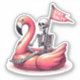 Este pegatina cuenta con un divertido esqueleto navegando en un barco flamingo rosado, acompañado por una bandera que con orgullo dice "Stay Salty".
