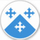 "Por chevron argente y azure, tres cruces de flor contrastadas".
