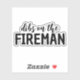 Dibs on The Fireman, Funny Fireman's Wife Pegatina" es un pegatina lúdico y humorístico que presenta un ingenioso mensaje relacionado con ser la esposa de un bombero. Este pegatina es perfecto para aquellos que quieren agregar un toque de humor y personalidad a sus pertenencias o mostrar su apoyo a los bomberos y sus familias.