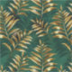 Seamless pattern of gold, jewelry, shiny fern branches and leaves on green, woodland, textured background. Golden fern.