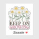 Las citas positivas de estilo vintage en Pegatina con la frase siguen creciendo. Un regalo alegre y perfecto para novia, amiga, hermana, madre. Pegatina con arte retro motivacional y inspirador.