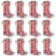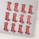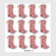 Estos pegatinas presentan un retrato acuarela de un par de botas de vaquera rojas decoradas con un arco de cinta dorada.