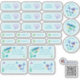 Zauberhafte wasserfeste Schulaufkleber für Kinder. Set mit 24 verschiedenen eckigen und runden Namensaufklebern, Motiv Meerjungfrau mit Fischen, Seesternen und Muscheln.