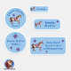 Pegatina Set - 24 Namensaufkleber Pferde Herzchen blau |