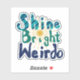 ¡Abran sus pertenencias con nuestro pegatina "Shine Bright Weirdo"! Este diseño vibrante y caprichoso es perfecto para añadir un toque de personalidad a tu laptop, botella de agua, periódico o cualquier superficie que necesite un poco de inspiración. Tanto si eres un orgulloso "raro" como si conoces a alguien que adopta su singularidad, este pegatina celebra todas las cosas extravagantes y coloridas.