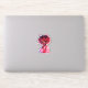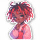 Niño animado con piel oscura y rastas de dos tonos rojos y marrones. Lleva puesto overoles de color rosa oscuro con mangas esponjosas de color rosa claro, con puntos de polka blanco y rayas. Un chico dulce que hace un lindo pegatina.