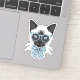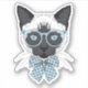 Este diseño presenta un gato siamés vestido con un par azul de gafas y corbata de arco a cuadros.