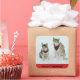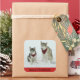 Dos hermosos Huskies siberianos en la nieve vestidos con sus pañuelos de Santa listos para celebrar a los Navidades.