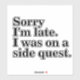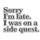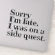 Coge esto "Lo siento, llego tarde. Estaba en una búsqueda lateral", divertido diciendo camiseta para mostrar tu sentido del humor usando este estilo de texto básico. para los amantes del arte contemporáneo blanco y negro. Estoy seguro de que puede encender muchas conversaciones y ayudará a romper el hielo. Este diseño divertido es un gran regalo para los jugadores que introverten amigos o familia, y también hace un gran regalo de cumpleaños, de vacaciones o de Navidad. (PUEDE CAMBIAR Y PERSONALIZAR ESTE DISEÑO DE TEXTO O CUALQUIER TEXTO QUE DESEE EN MI TIENDA).