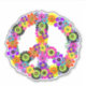 Un símbolo de paz floral en tonos rosa, turquesa, amarillo, naranja, violeta, verde y negro.