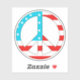 Este diseño presenta el símbolo de la paz y los colores de la bandera estadounidense