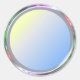 Pegatina metalizado cromado para su texto, logotipo o imagen. Círculo azul pálido/amarillo.