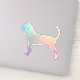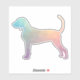 Silueta de vista lateral de raza de perro de caza Bluetick Coonhound rellena con un colorido patrón geométrico pastel. Esta raza de perro también puede representar: Negro y Tan, Coonhound, caza, hound, Hanover, Bracco Italiano, hound blanco y negro francés, Bleu de Gascogne, Big Blue Gascony Hound, Petit Gascon Saintongeois, Pointer español, Burgos Pointer, hound letón, negro y tanque austríacos, Ariegeois, Artois