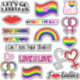 Una variedad de pegatinas lesbianas con la bandera del orgullo, símbolos de venus, citas de memes divertidos y más.