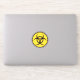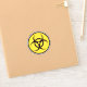 Pegatina con un símbolo negro de riesgo biológico en un círculo amarillo con contorno negro