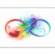 Símbolo de infinito dibujado artísticamente con una hermosa pluma arco iris sobre fondo blanco. Estilo tatuaje.