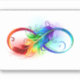 Pegatina Símbolo infinito con plumas arcoiris