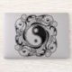 Diseño artístico del símbolo Yin Yang decorativo en estilo de tatuaje psicodélico en negro y blanco. Creado originalmente con arte gráfico vectorial de alta calidad. Copyright BluedakArt TheChameleonArt.