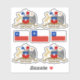 Cuatro pegatinas de vinilo cortados por Personalizados con el escudo de armas de Chile y tres pegatinas con la bandera chilena en el centro