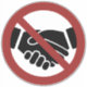 Icono de apretón de manos que incita un círculo rojo prohibido.