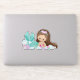 Pegatina Sirenita, sirena, conchas, pelo marrón