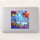 Pegatina SlipperyJoe NYC luna de grafiti rodeada de agitaci