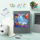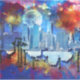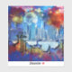 SlipperyJoe NYC luna de graffiti rodeada de nubes dramáticas giratorias cielo intensos degradados de color vívido paisaje urbano realismo fantasía rascacielos edificios mashup grit urbano artístico de ensueño similar orgullo gay regalos LGBTQIA blues fiery rods púrpura amarillos soñar casi como narración de ciencia ficción tonos fríos energía